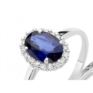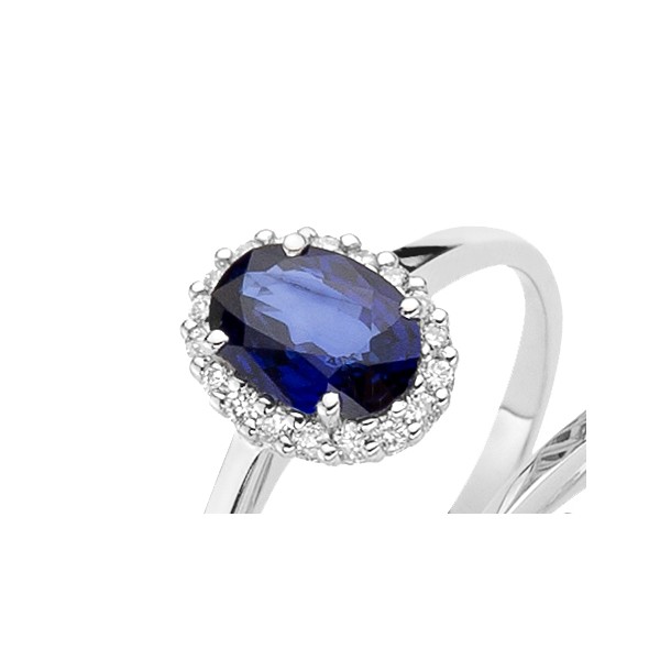 Anello in oro diamanti ct 0.06 e zaffiro ct. 0.55