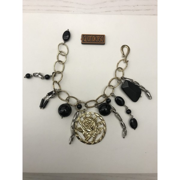 BRACCIALE ARGENTO LAMINATO ORO GIALLO/ AGATA NERA