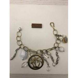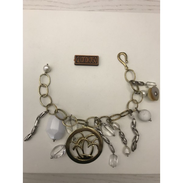 BRACCIALE ARGENTO LAMINATO ORO GIALLO/ AGATA BIANCA/ PERLE
