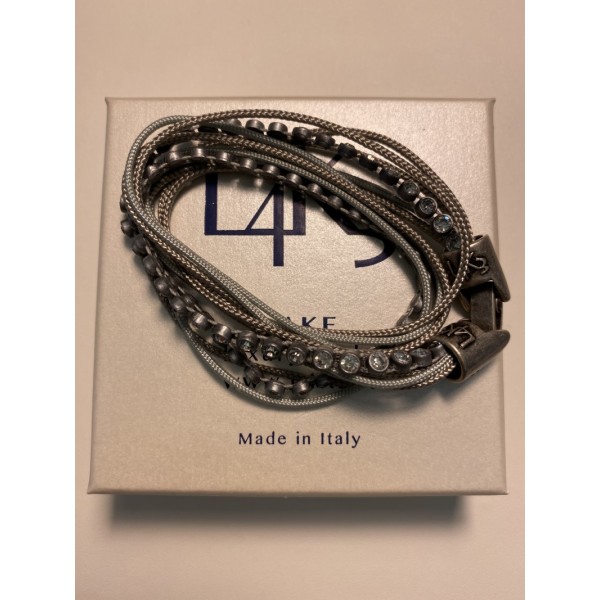 BRACCIALE INTRECCIATO CORDURA MARINA GRIGIA- SWAROVSKI / ACCIAIO BRUNITO