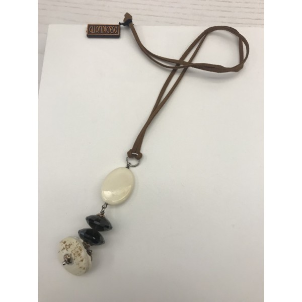 COLLANA ARGENTO/ CONCHIGLIA/ QUARZO FUME’/ CORALLO BAMBU’