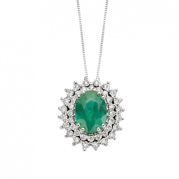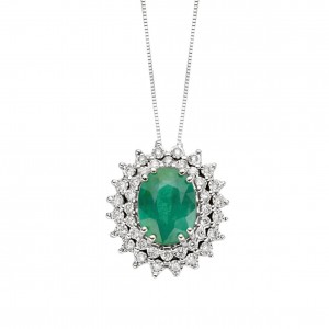 Pendente con catena in oro diamanti ct. 0.22 e smeraldo ct 1.15
