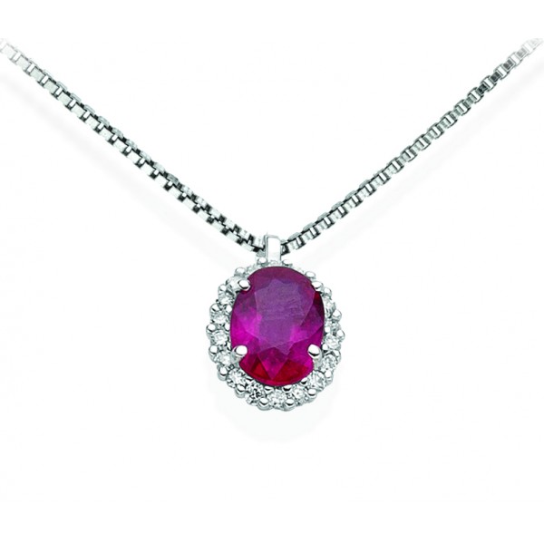 Pendente c/catena in oro diamanti  ct. 0.06 e rubino ct.0.55