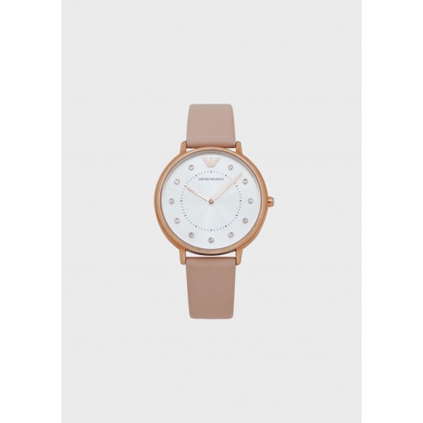 L'eleganza rivisitata in chiave contemporanea. Un modello dalle linee sinuose che diventerà l'accessorio indispensabile in ogni look. Orologio con elegante quadrante tondo in acciaio dorato decorato da luminosi cristalli, vetro minerale e cinturino in cuoio.